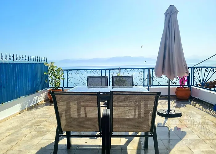 Samtlige værelser i Alkyone Lejlighed ferielejlighed har udsigt over havet.
